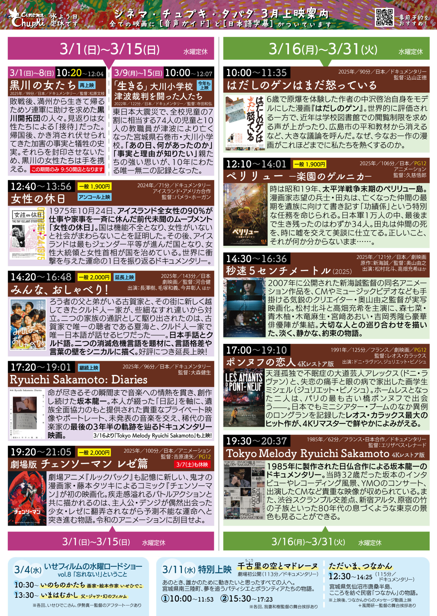 - <事前予約をお勧め>26年3月の上映スケジュールのお知らせ(2月27日更新)