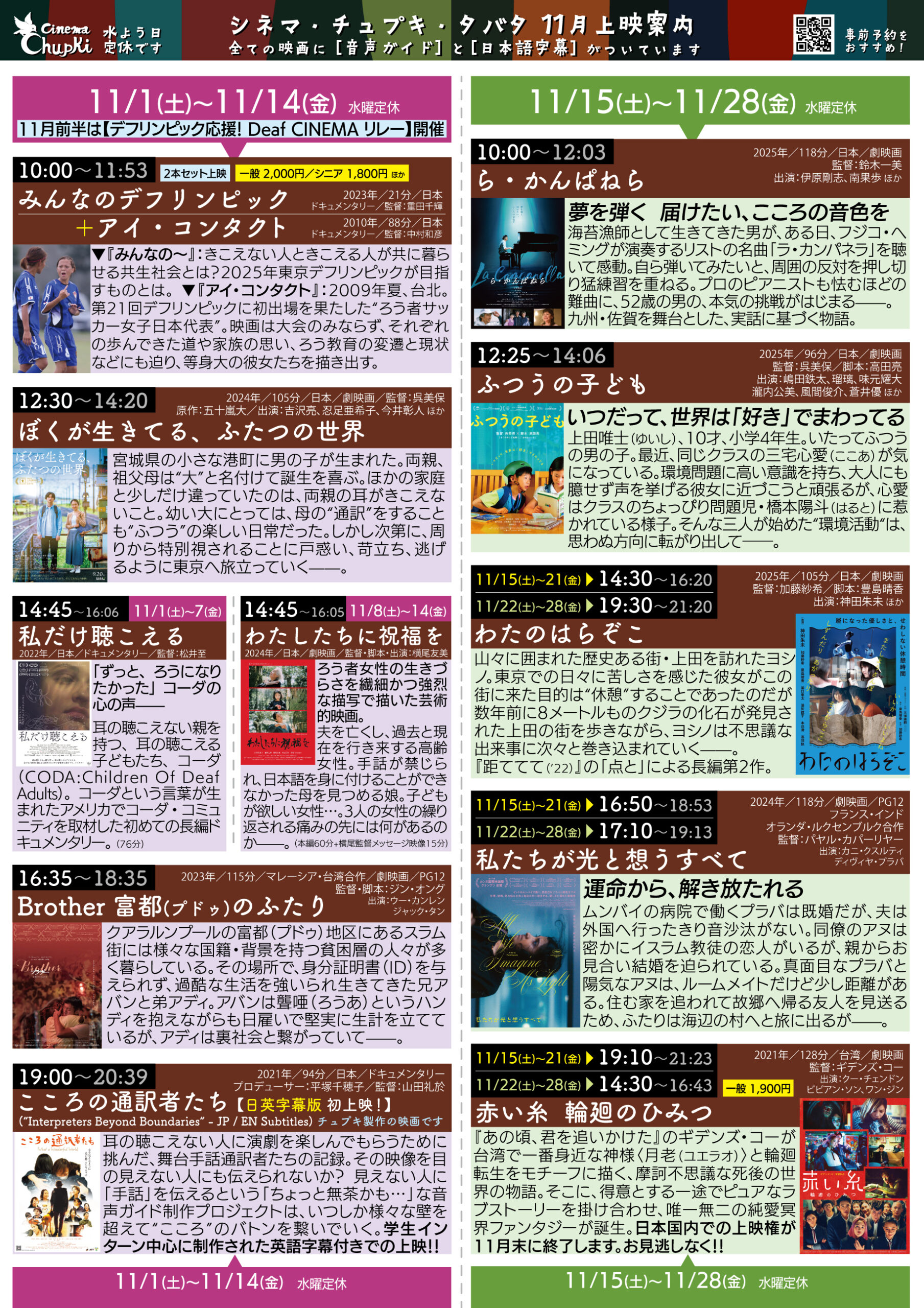 - <事前予約をお勧め>25年11月の上映スケジュールのお知らせ(10/17更新)